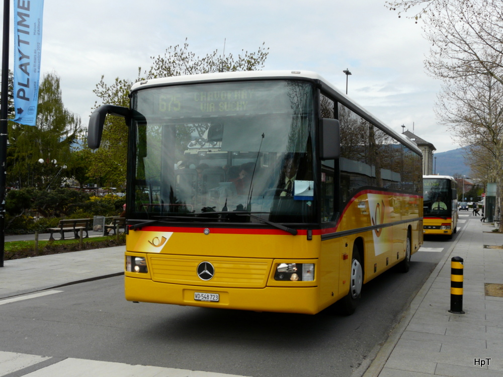 Postauto - Mercedes VD 548723 unterwegs auf der Linie 675 in Yverdon les Bains am 25.04.2012