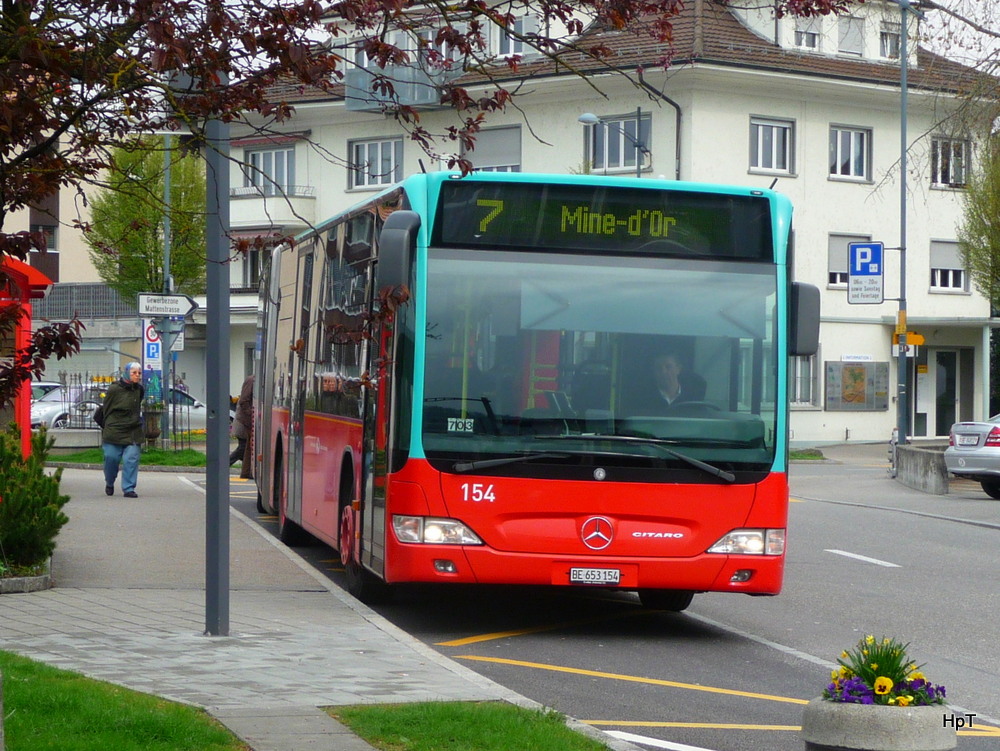 VB Biel - Mercedes Citaro Nr.154 BE 653154 unterwegs auf der Linie 7 bei der Haltestelle beim Bahnhof Brügg am 10.04.2012