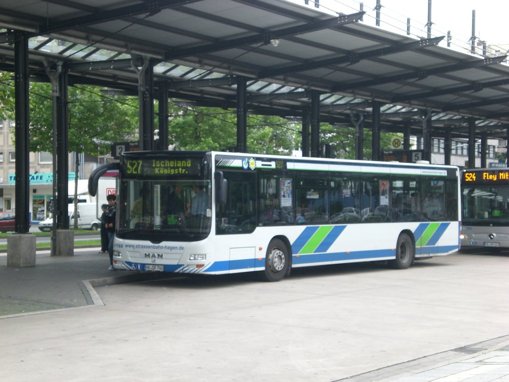 MAN Niederflurbus 3. Generation (Lion's City) auf der Linie 527 nach Hagen Ischeland Königstraße am Hauptbahnhof Hagen.(11.7.2012)