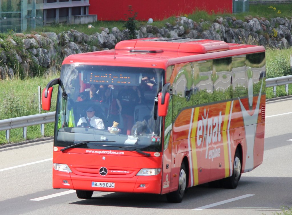 Mercedes Benz Tourismo de la maison anglaise ExpatExplore photographié le 08.08.2012 à Oensingen