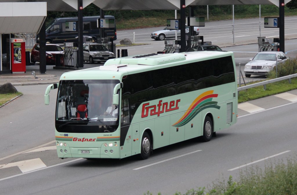 Volvo 9700 de la maison Regenbogen Reisen photographié le 02.08.2012 sur l'aire de repos du St-Bernard à Martigny