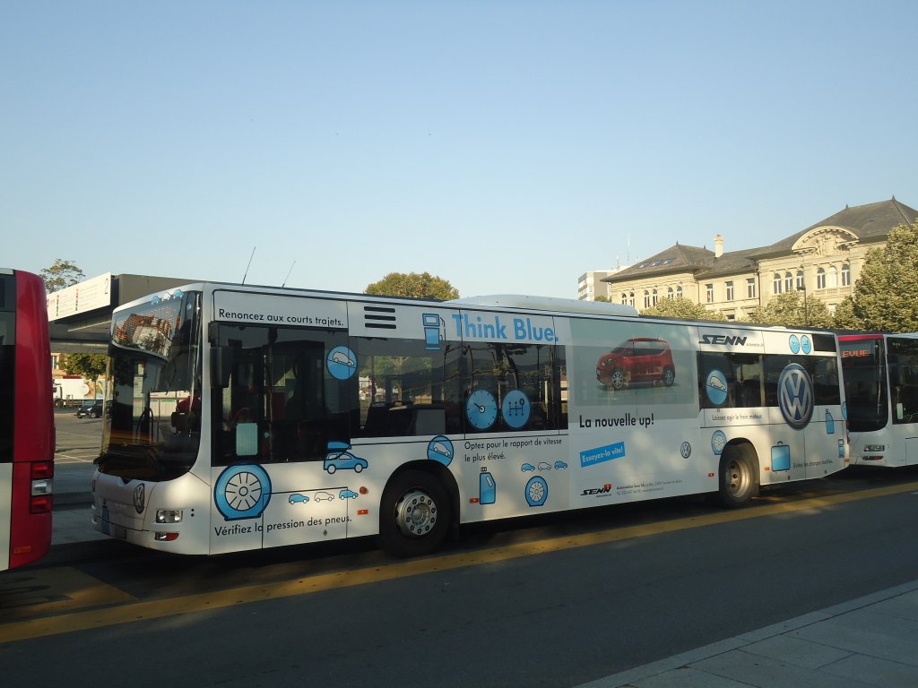 Stadtbus Winterthur Nr. 175 (Solaris Trollino 18) am 28.7.2012 beim Stadthaus als Linie 3 zum Rosenberg, dies im Zuge der Bauarbeiten am Bahnhofplatz.