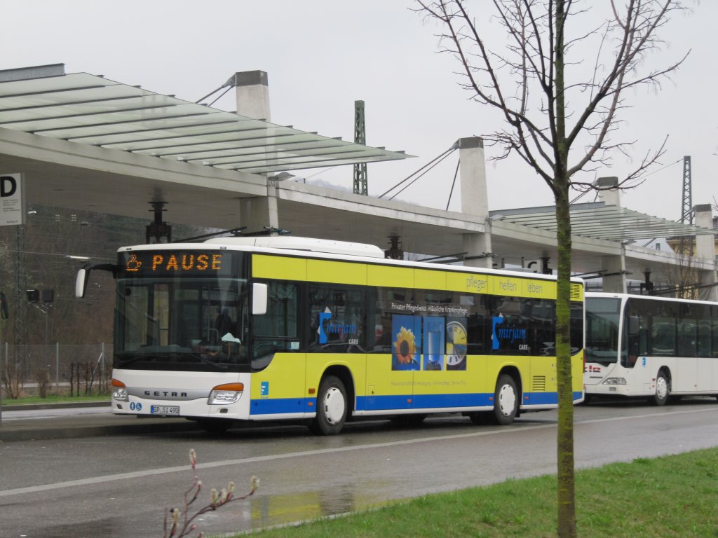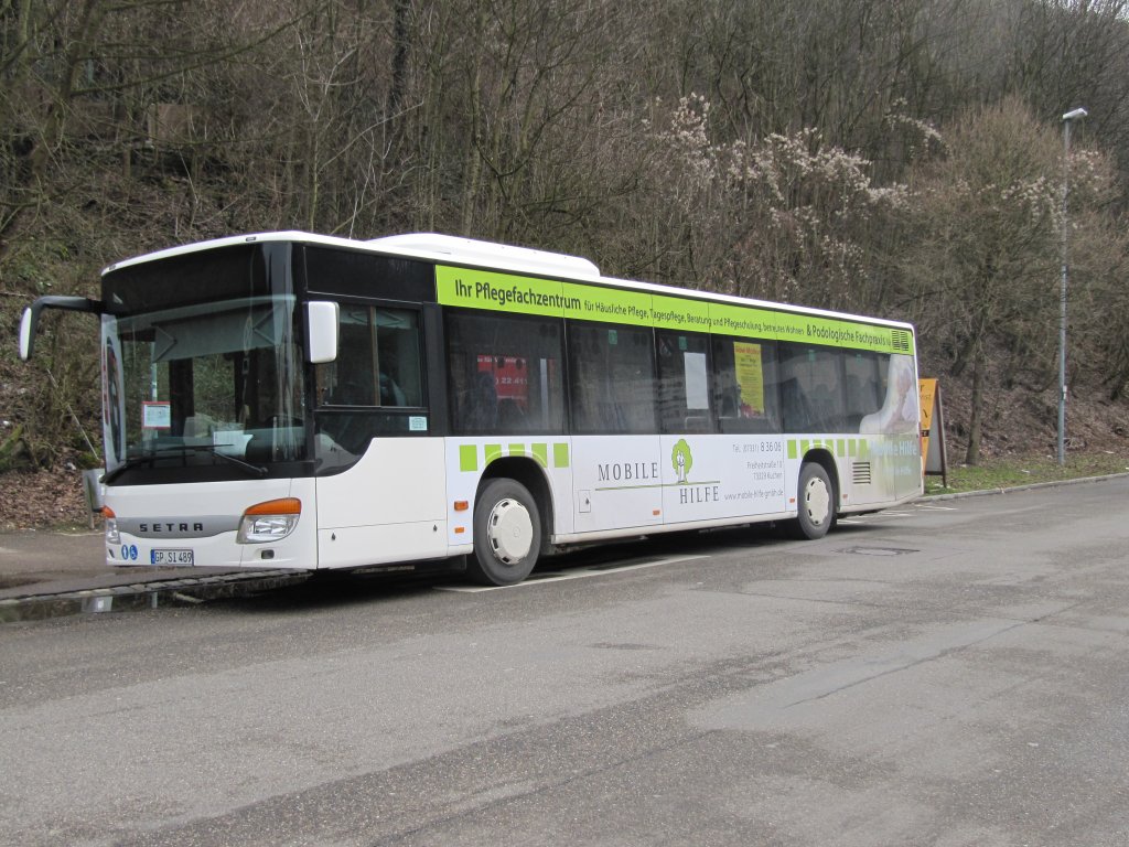 Ein Setra S415NF der Sihler KG mit Werbung für Mirjam Care versehen. Der Bus wurde Ende 2011 beschafft als Ersatz für Wagen 490 einen MAN NL263.