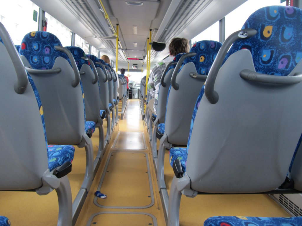 Innenraum des Setra S419UL der Sihler KG mit dem Kennzeichen GP-SI-498. Ungewöhnlich ist die reine Überlandausstattung ohne Reiseaustattung.