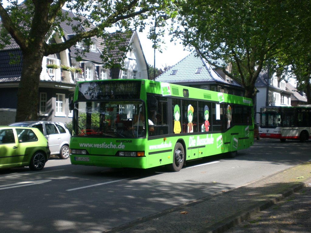 Neoplan N 40-Serie auf der Linie 244 nach Gelsenkirche-Resse Cäcilienhof an der Haltestelle Gelsenirchen Buer Rathaus.(12.7.2012)