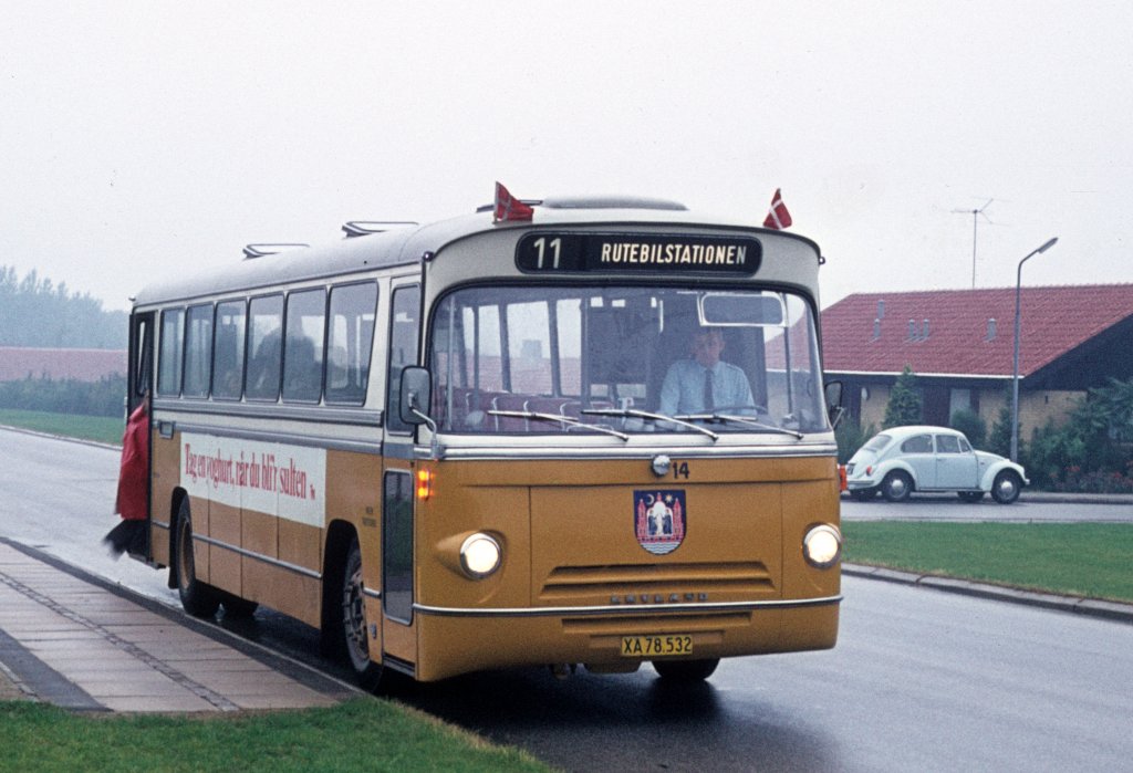 Aarhus ÅS Buslinie 11 (Leyland-DAB 14) Tranbjerg am 13. September 1974. - Der Dieselbus fährt in Richtung Rutebilstationen, d.h. Omnibusbahnhof.