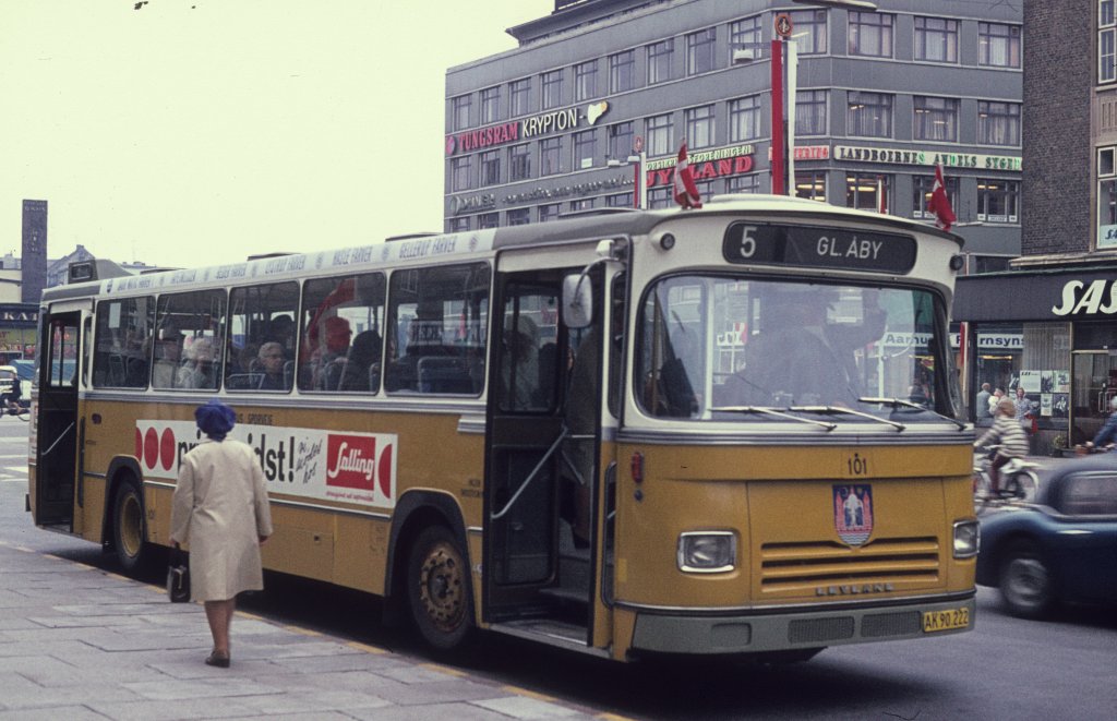 Aarhus ÅS Buslinie 5 (Leyland-DAB 101) Park Allé / Banegårdsplads am 13. September 1974.