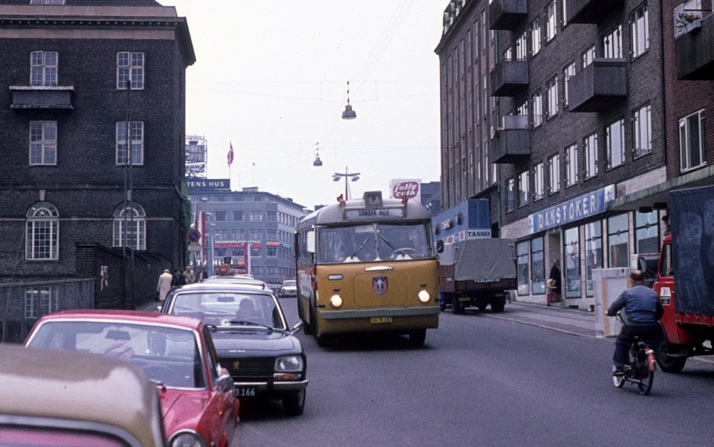 Aarhus ÅS Buslinie 9 (Volvo / Nordisk Karosserifabrik Serie 121 - 187, 1953-1963) Ny Banegårdsgade am 13. September 1974.