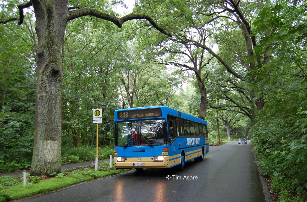 Der Wagen 2000 (DB O405 / DB E85) im Juni 2012 auf der Linie 218 an der Haltestelle Wasserwerk Beelitzhof.
