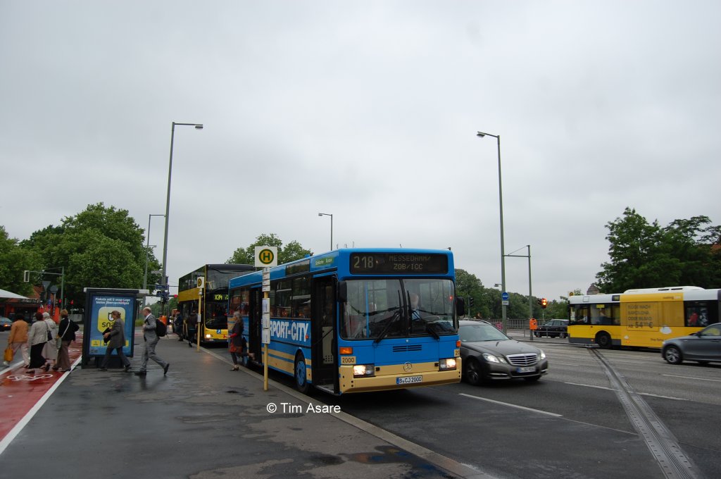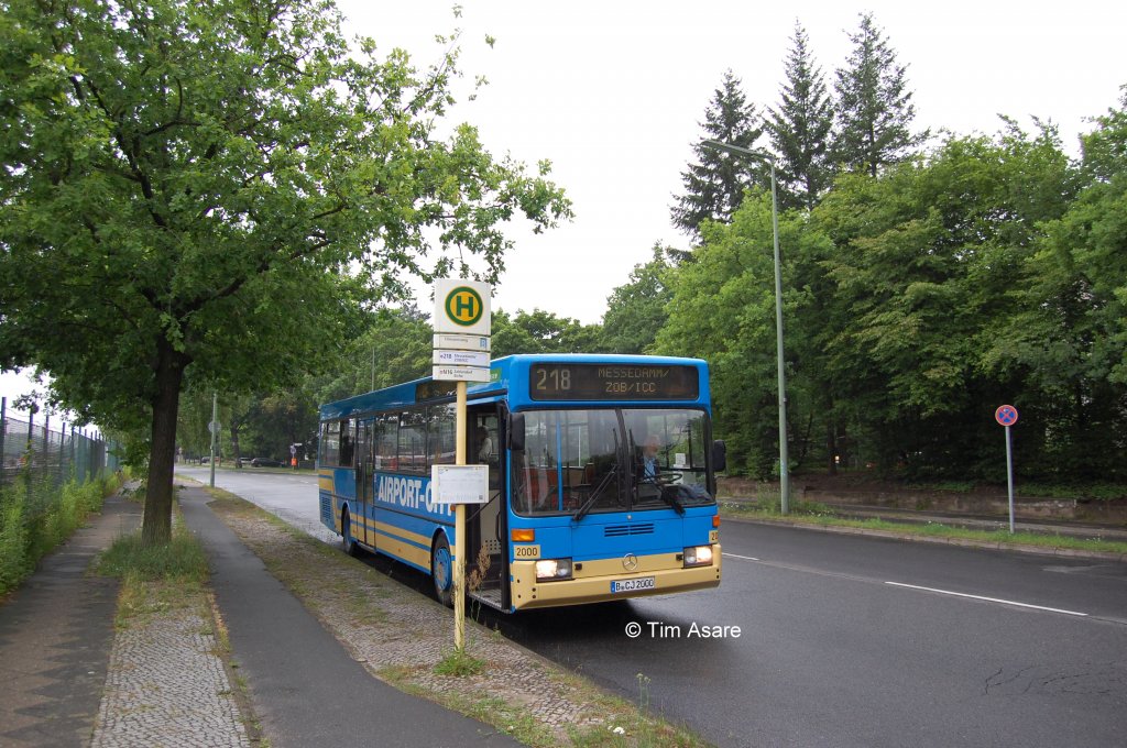 Der Wagen 2000 (DB O405 / DB E85) im Juni 2012 auf der Linie 218 an der Haltestelle Messedamm/ ZOB/ ICC.