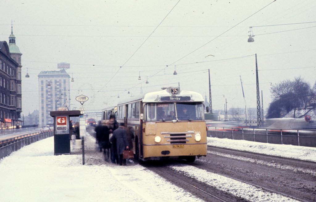 Kopenhagen KS / AB Buslinie 35 (Leyland-DAB 920) Amager Boulevard am 13. Februar 1970.