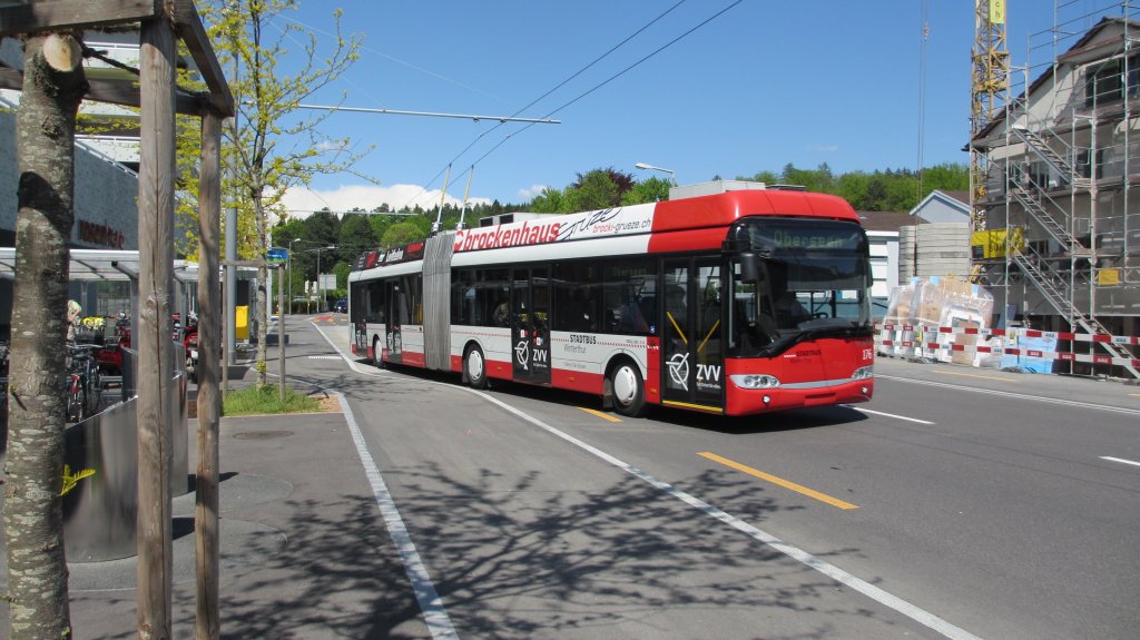Stadtbus Winterthur Nr. 176 verlässt am 4.5.2012 die Endhaltestelle Rosenberg, gut 1 Jahr nach der Linienverlängerung.