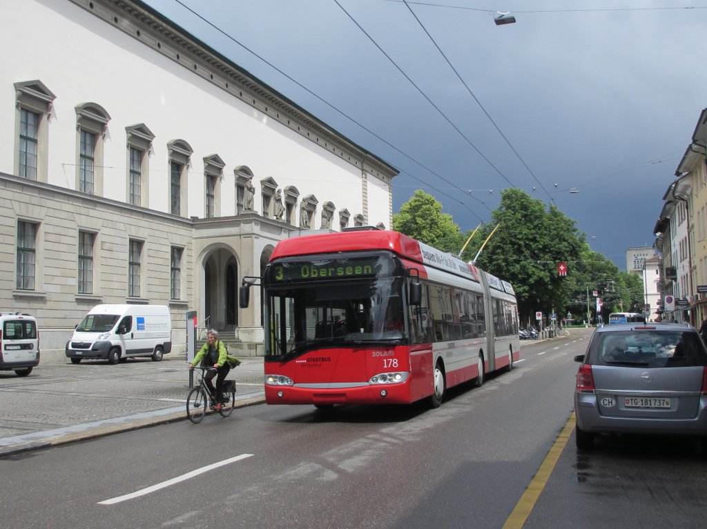 Stadtbus Winterthur Nr. 178 am 13.6.2012, in der Stadthausstrasse kurz vor der Schmidgasse.
