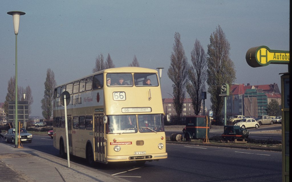 Berlin BVG Buslinie 66 (Doppeldeckbus für Einmannbetrieb) Messedamm am 4. November 1973.