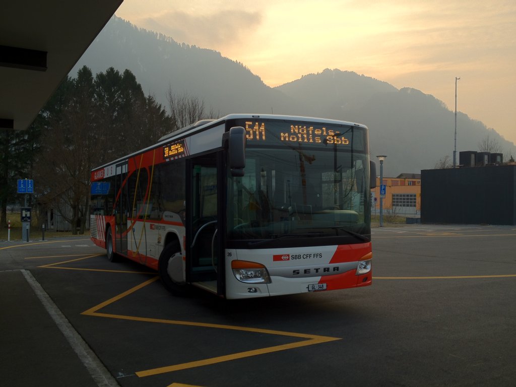 GlarnerBus/ NIEDERER AUTOBETRIEB, Setra S 415 NF (GL 348 / Nr. 26) am 04.03.2012 beim Bahnhof Bilten. Der Bus fährt im Auftrag der SBB als Linie 511 von Bilten SBB nach Näfels-Mollis SBB.
