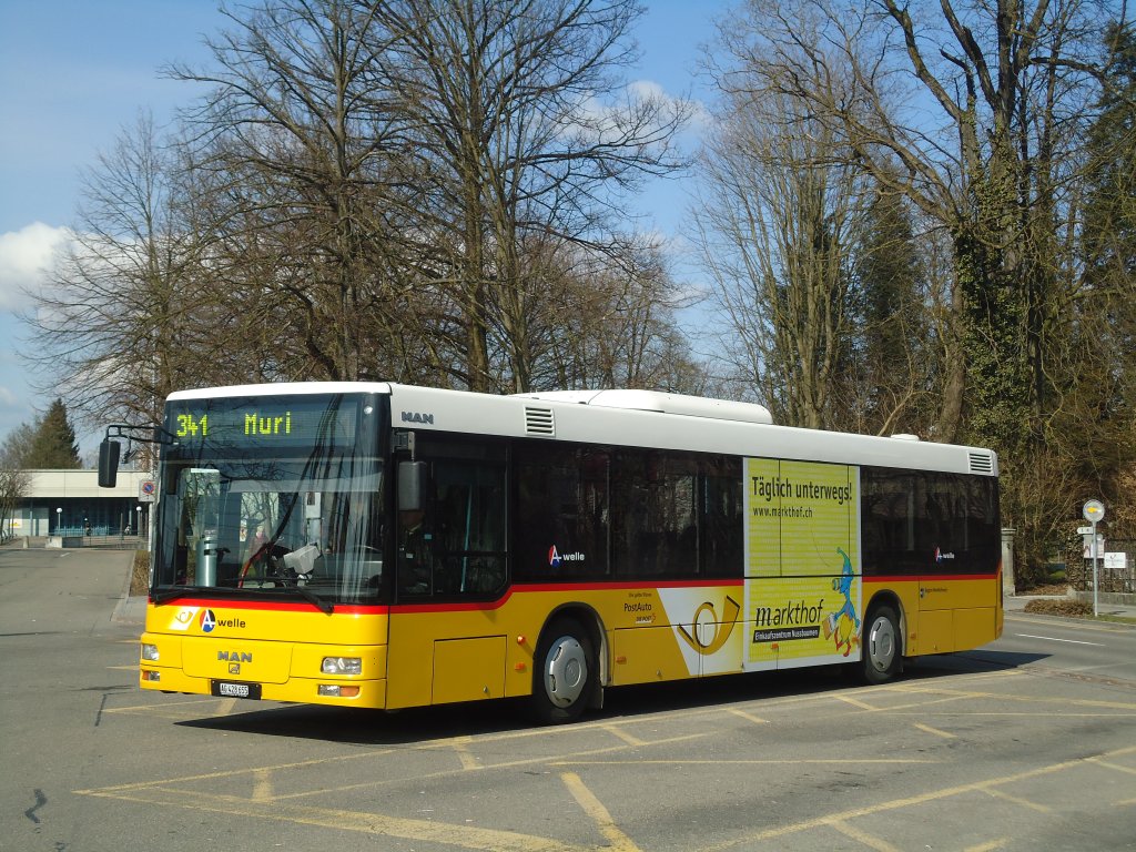 PostAuto Nordschweiz - AG 428'655 - MAN am 6. März 2012 beim Bahnhof Wohlen