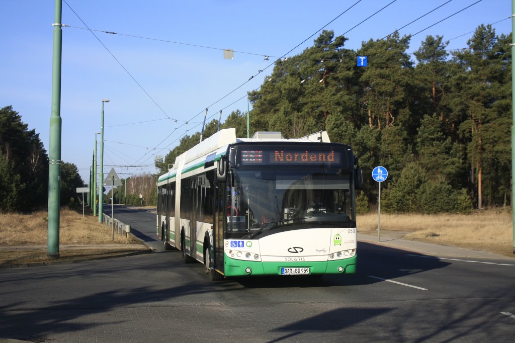 Solaris Trollino 18AC, Obus 059 der BBG-Eberswalde im Brandenburgischen Viertel am 06.03.2012.