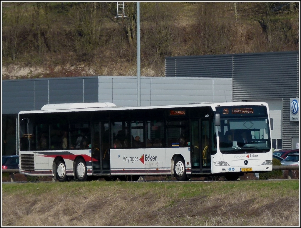 (RR 6416) CFL 75, Am 19.03.2012 biegt dieser M-B Integro von der Hauptstrasse in die Bushaltestelle beim Bahnhof von Wasserbillig ein.