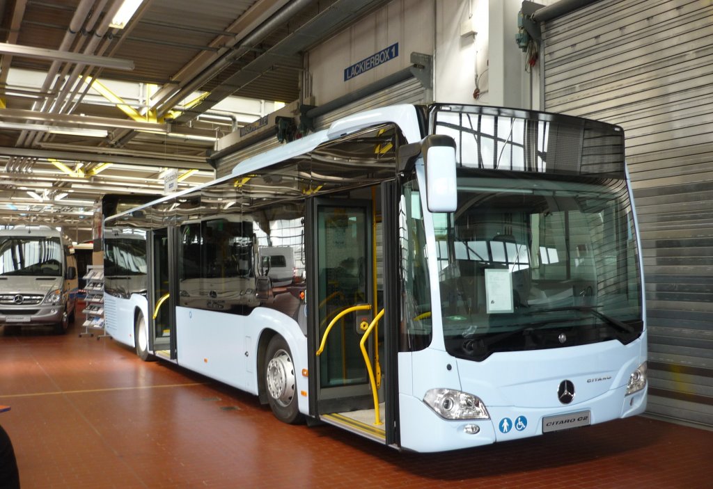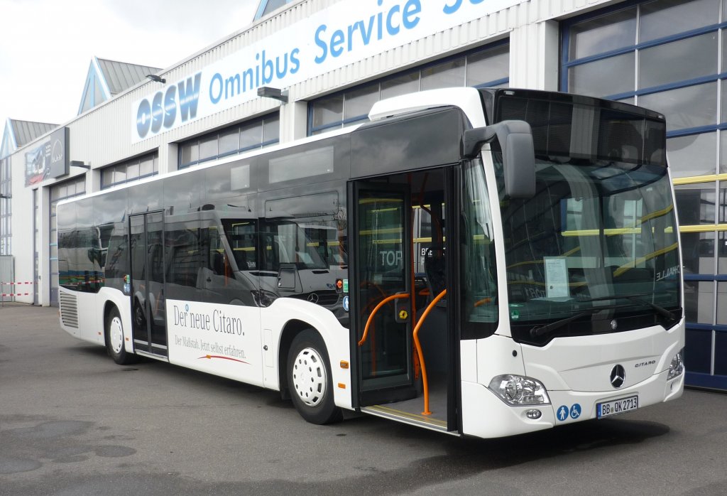 Ein Citaro Bus von Saarbahn und Bus mit neuer Werbung. Das Foto habe ich im Mai 2012 am Hauptbahnhof in Saarbrücken gemacht.