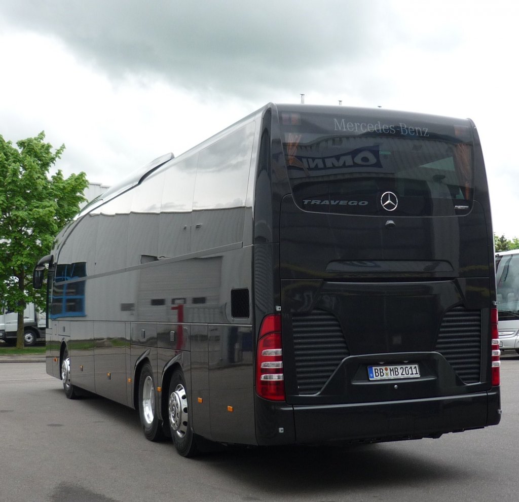 Ein neuer Travego mit Euro 6 Motor, das sieht man an den Kühlschlitzen in Herrenberg-Gültstein