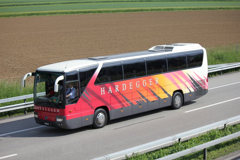 Mercedes Benz Tourismo de la maison Hardegger photographié sur l'autoroute Berne - Zurich le 27.05.2012