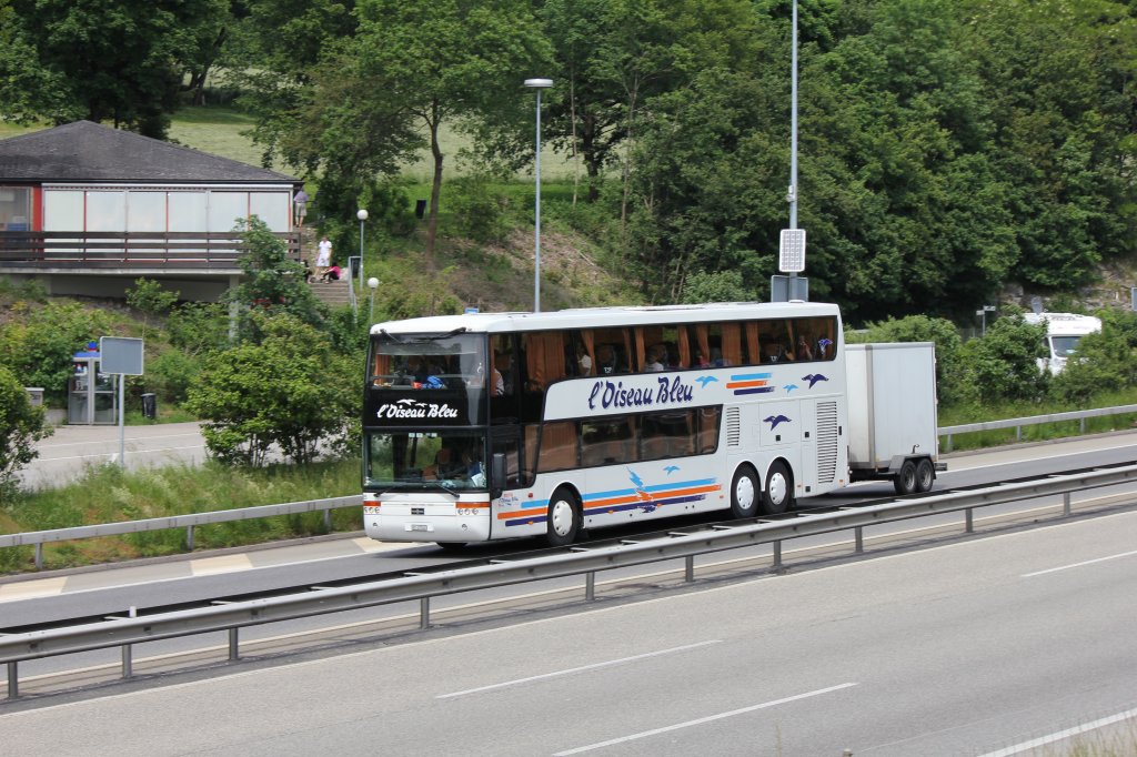 van Hool Astromega de la maison L'Oiseau Bleu photographié le 27.05.2012 sur l'autoroute Bâle - Berne