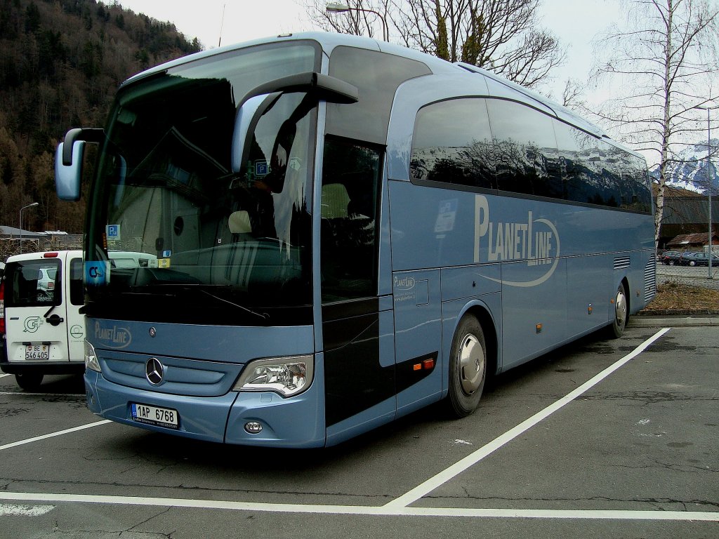 Mercedes Benz Travego de la maison tchèque Planet Line photographié le 23.01.2012 à Interlaken