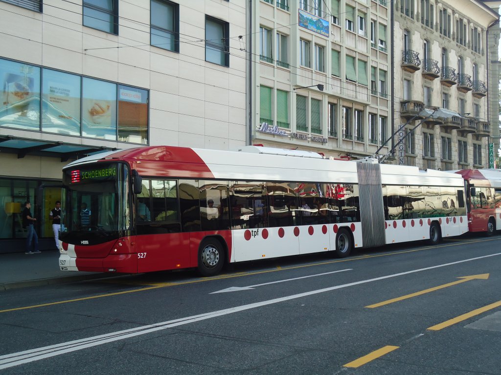 TPF Fribourg - Nr. 527 - Hess/Hess Gelenktrolleybus am 19. August 2012 beim Bahnhof Fribourg