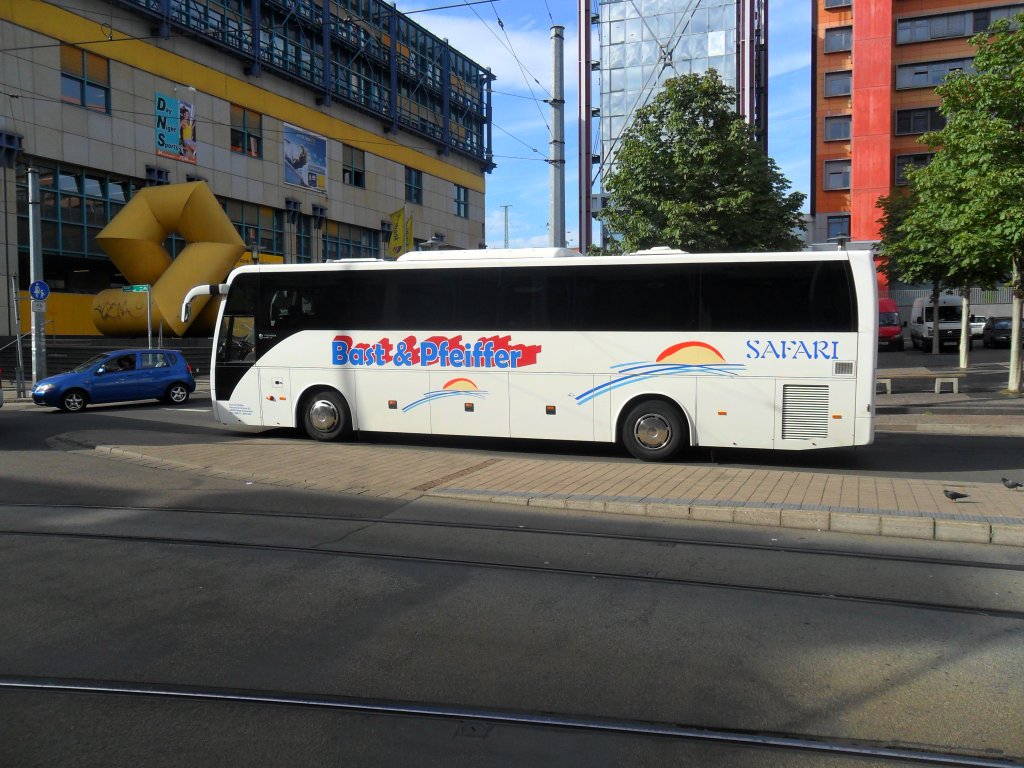 Ein Temsa Reisebus der Firma Bast und Pfeffer am Hauptbahnhof in Saarbrücken. Aufgenommen habe ich das Bild im August 2012.