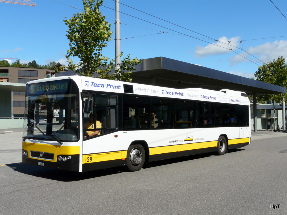 VB Schaffhausen - Volvo 7700 Nr.28 SH 38028 unterwegs zu dem SBB Bahnhof in Schaffhaussen am 26.08.2012