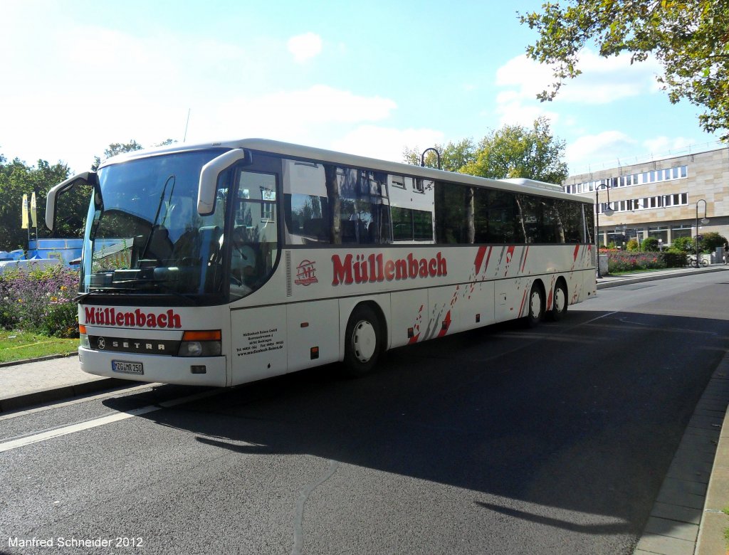 Dieses Bild zeigt einen 15 Meter langen Setra. Der Bus gehört der Firma Müllenbach aus Merzig im Saarland. Aufgenommen habe ich das Foto am Freitag,14.09.2012 am Landestheater in Saarbrücken.