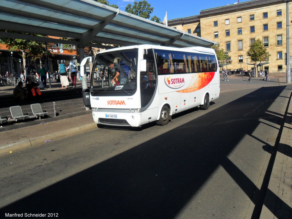 Ein Temsa Reisebus der Firma Sotram Reisen am Hauptbahnhof in Saarbrücken. Das Foto habe ich im August 2012 gemacht.