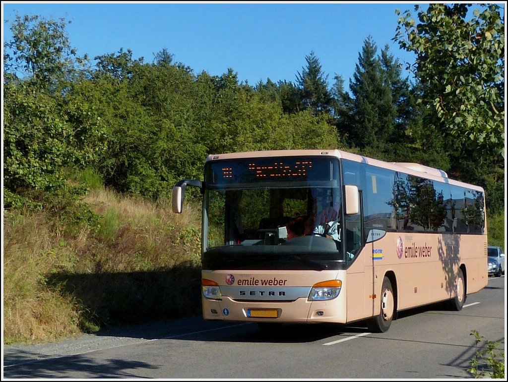 (EW 1166) Setra S 416 UL, der Firma Emil weber bedient die Strecke Ettelbrück - Wilwerwiltz - Drauffelt als SEV, weildie Bahnstrecke zwischen Kautenbach und Clervaux wegen Bauarbeiten gesperrt ist. Das Foto wurde in der Nähe von wilwerwiltz aufgenommen am 07.09.2012.