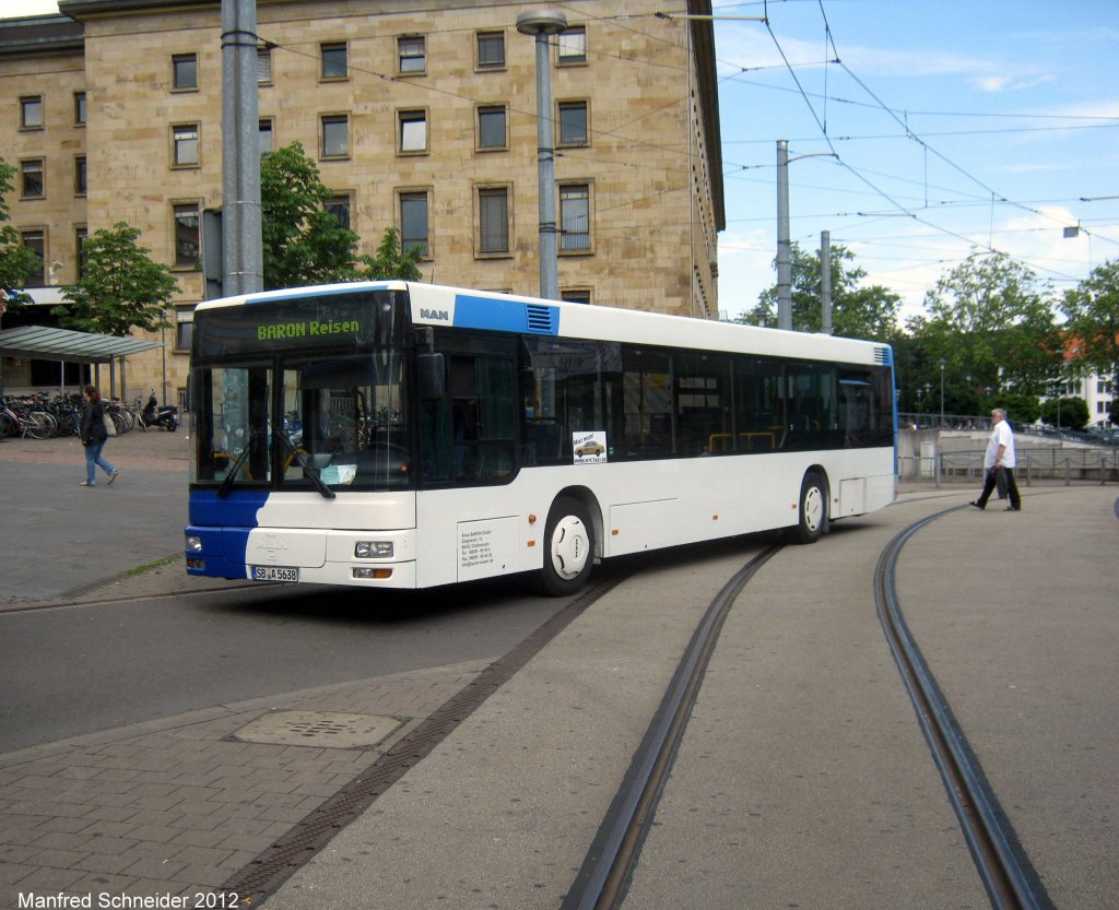 MAN Bus der Firma Baron Reisen am Saarbrücker Hauptbahnhof. Die Aufnahme des Foto war im August 2012.