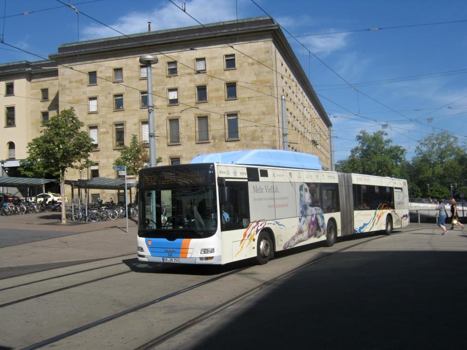 MAN Lions City Gelenkbus am Saarbrücker Hauptbahnhof.Das Bild habe ich im August 2012 gemacht.