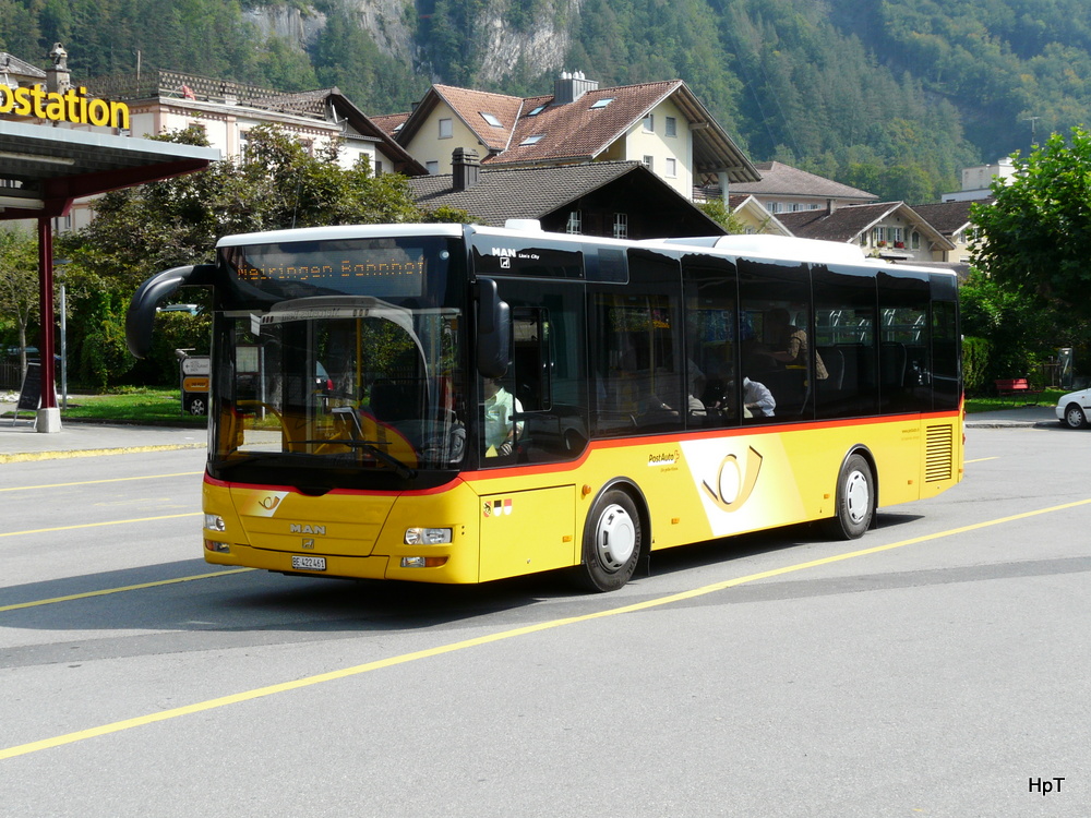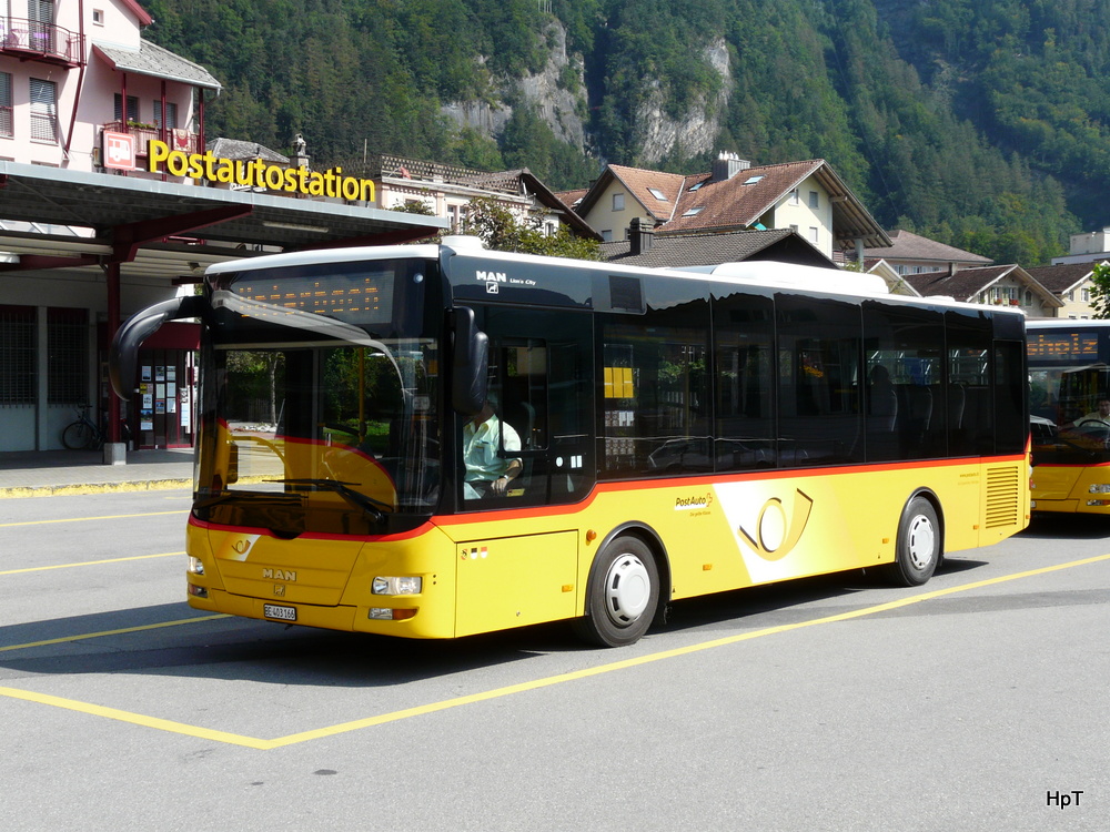 Postauto - MAN Lion`s City BE 4022461 bei der Postautostation in Meiringen am 11.09.2012