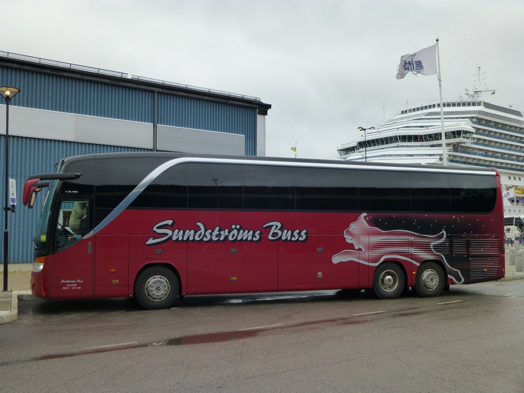 Setra S 328 DT, ehem. "Dirr Stricker", jetzt für ein russisches Unternehmen, Stockholm 27.08.2012