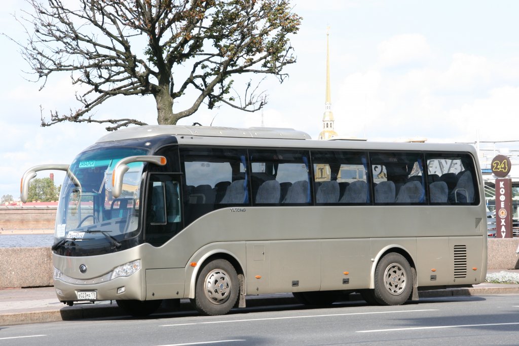 Yutong, chinesischer Hersteller, Front stark an den Irizar Century angelehnt, St. Petersburg 25.08.2012