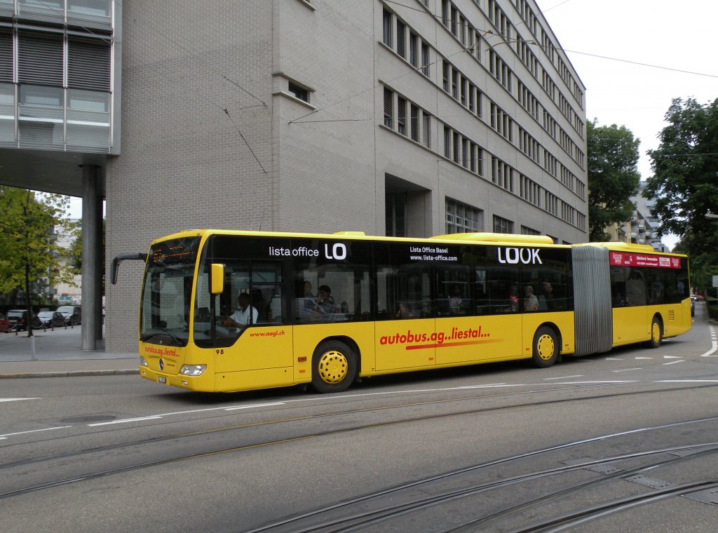 Mercedes Citaro der AAGL mit der Betriebsnummer 98 auf der Linie 81 fährt zur Endhaltestelle am Aeschenplatz. Die Aufnahme stammt vom 18.09.2012.