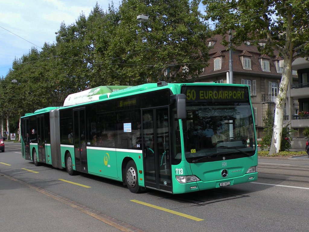 Mercedes Citaro mit der Betriebsnummer 713 auf der Linie 50 fährt Richtung Bahnhof SBB. Die Aufnahme stammt vom 17.09.2012.