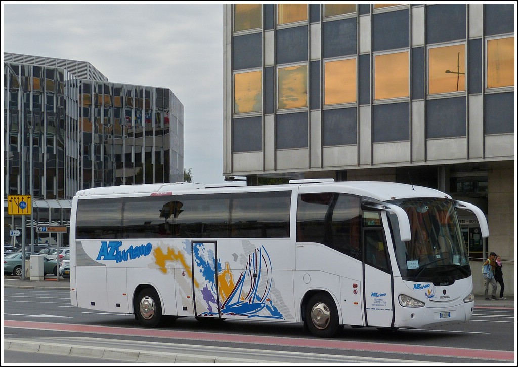 Scania Irizar Reisebus aufgenommen als dieser am Bahnhof von Luxemburg vorbeifährt. 23.09.2012