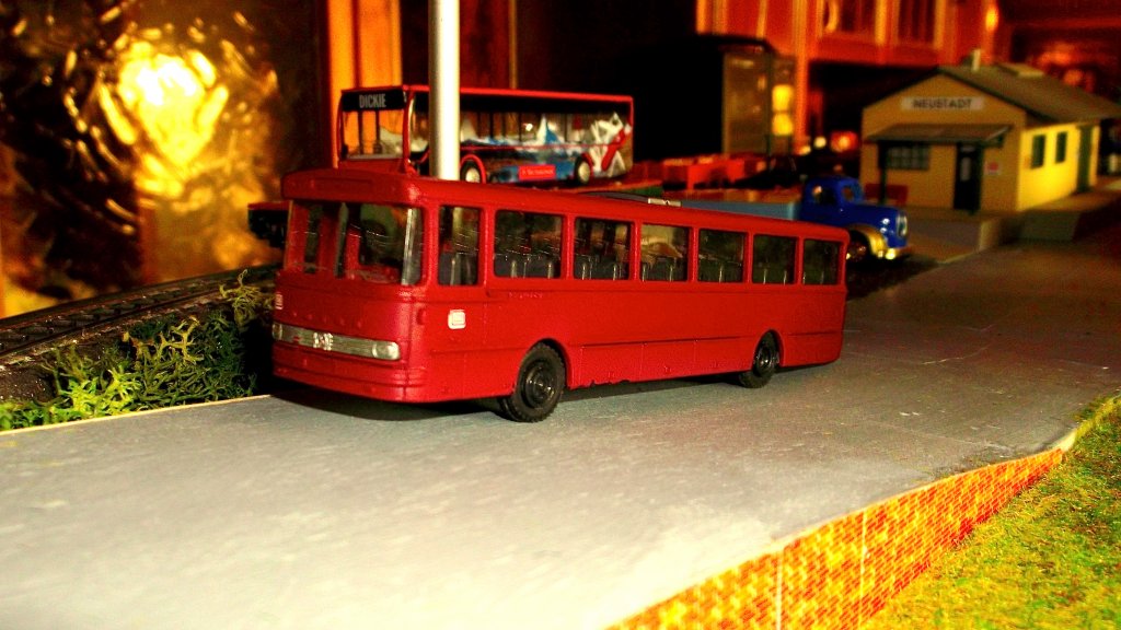 Hier der O 305 ex BVG nach der Umlackierung zum klassischen Bahnbus der 80er Jahre.