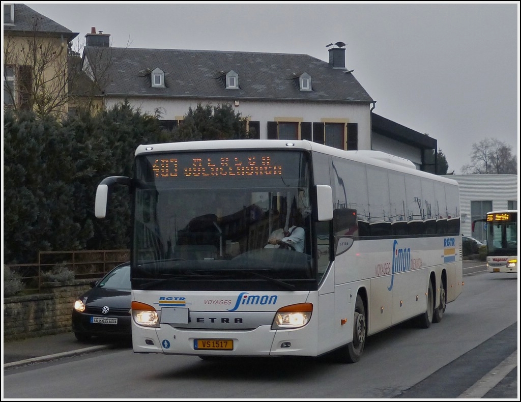 (VS 1517) Setra S 419 UL des Busunternehmens Simon aus Diekirch verlässt die Bushaltestelle am Bahnhof Mersch. 08.04.2013