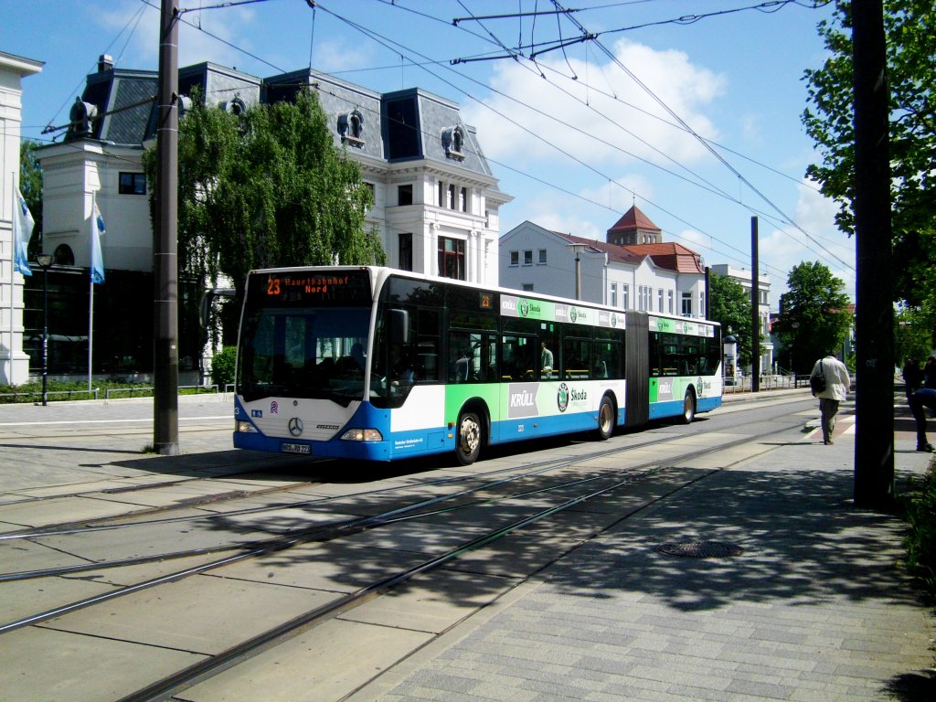 Mercedes-Benz O 530 GDH (Citaro Hybrid) auf der Linie 25 nach Rostock-Evershagen Thomas-Morus-Straße an der Haltestelle Rostock-Stadtmitte Doberaner Platz.(3.6.2013)