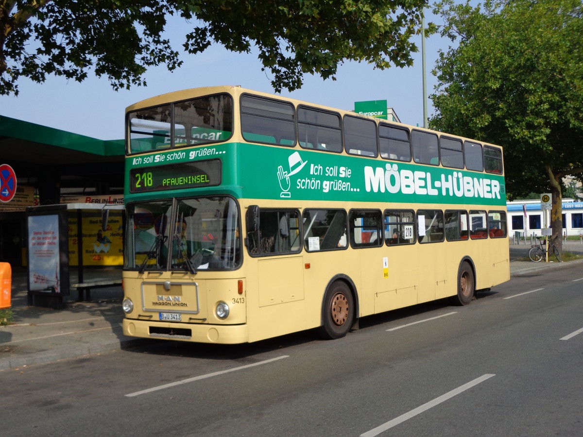 Der alte MAN Waggon Union BVG Wagen 3413 am 31.08.13 am ZOB beim Funkturm