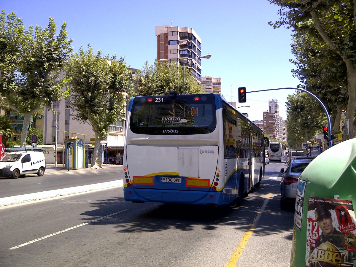 Heckansicht vom Wagen 231, Irisbus Crossway LE, LLorente Bus, Benidorm, Avenida de Madrid, 14.08.2013
