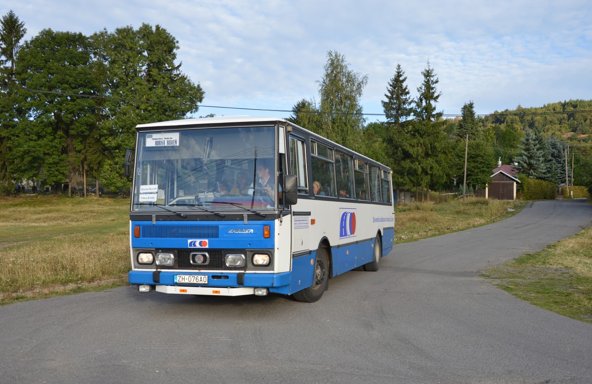 Karosa C 734.1340, Bj 1990; SAD Zvolen AG, Zweigstelle ´iar nad Hronom, ZH-076AO. Am 02.09.2013 erster Morgenkurs nach Sommerferien in ¦tiavnické Bane (Siegelsberg),Ortsteil Horná Roveň (an/ab 07:15). Bus fährt ab hier als Linie 602405 Kurs 47 nach Banská ¦tiavnica/Schemnitz Zentralbushaltestelle über ¦tiavnické Bane,Rybníky/Teiche (Maximilian-Hell-Grundschule) und Schemnitz Rathaus/Altstadt