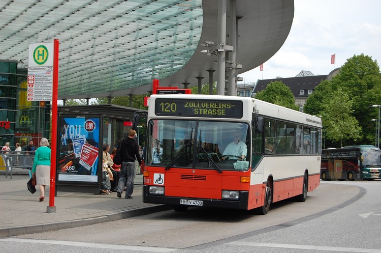 So ziemlich mit die letzten MB O 405 N1 gingen 1996 an die VHH. Hier ist Wagen 9601 am ZOB zu sehen. 12.5.12