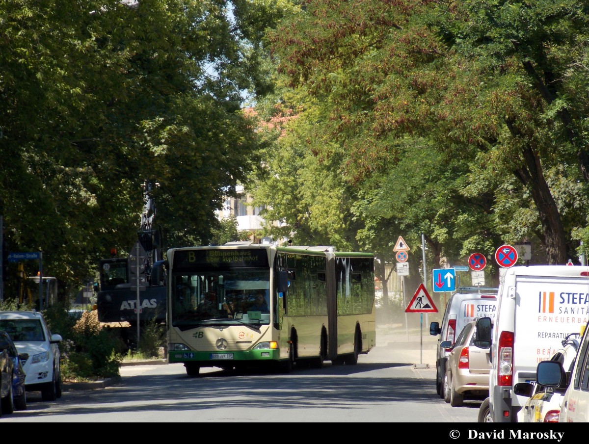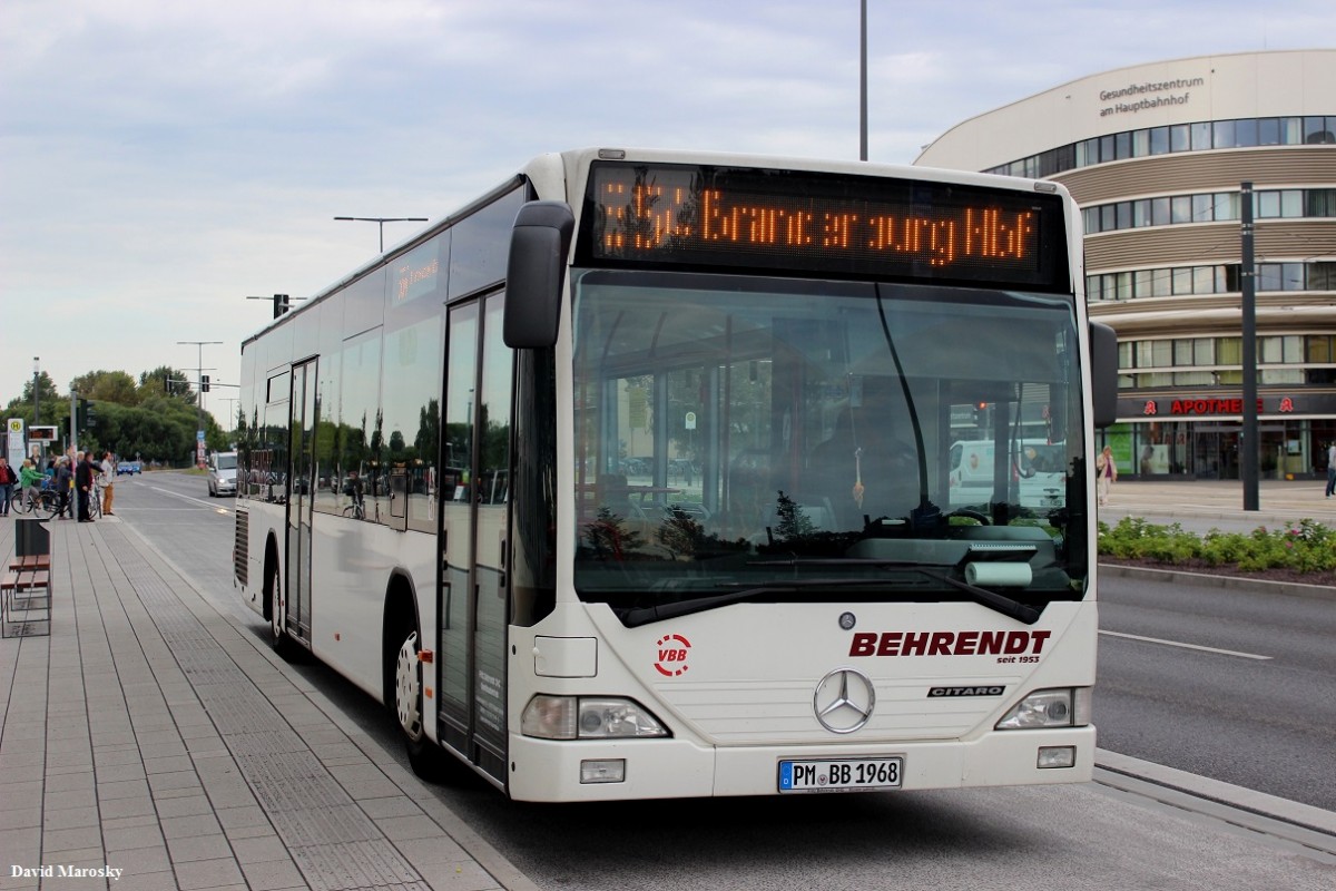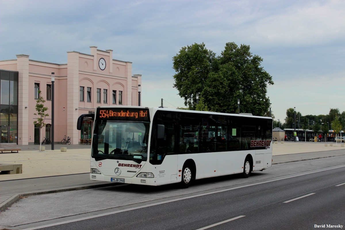 21.08.2014 am Brandenburger Hauptbahnhof steht der Citaro I der Firma Behrendt, Kloster Lehnin.