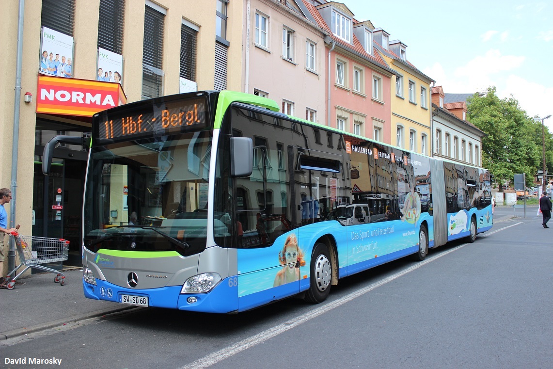 5. August 2014 - einer der Citaro C2 der Stadtwerke Schweinfurt, pausiert am Roßmarkt.